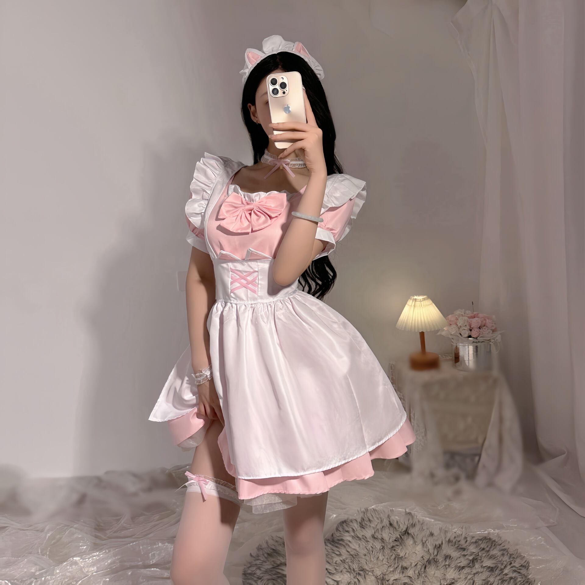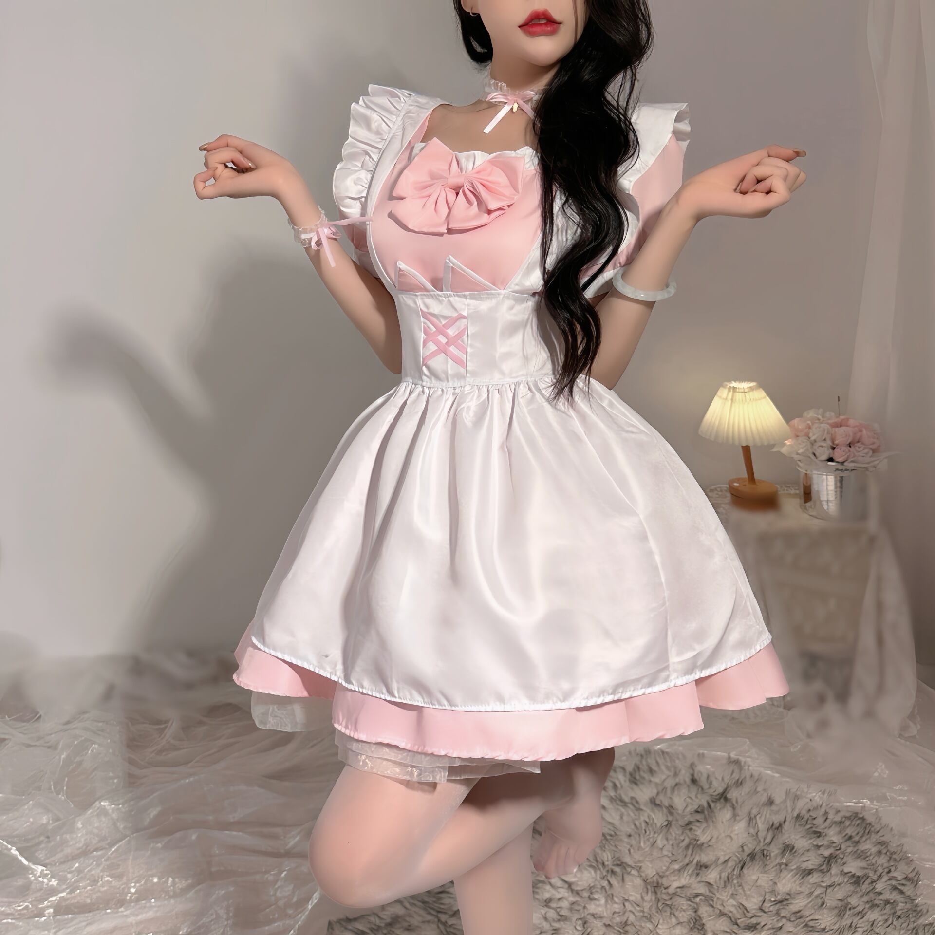 【商品内容】ワンピース、エプロン、ボウタイ、カチューシャ、チョーカー、リストバンク*1、レッグループ*1