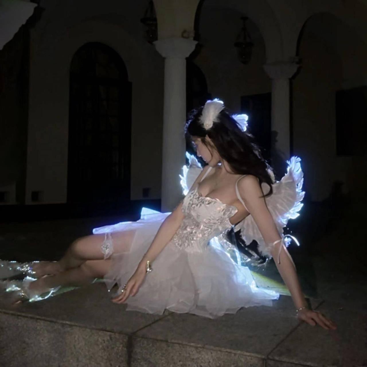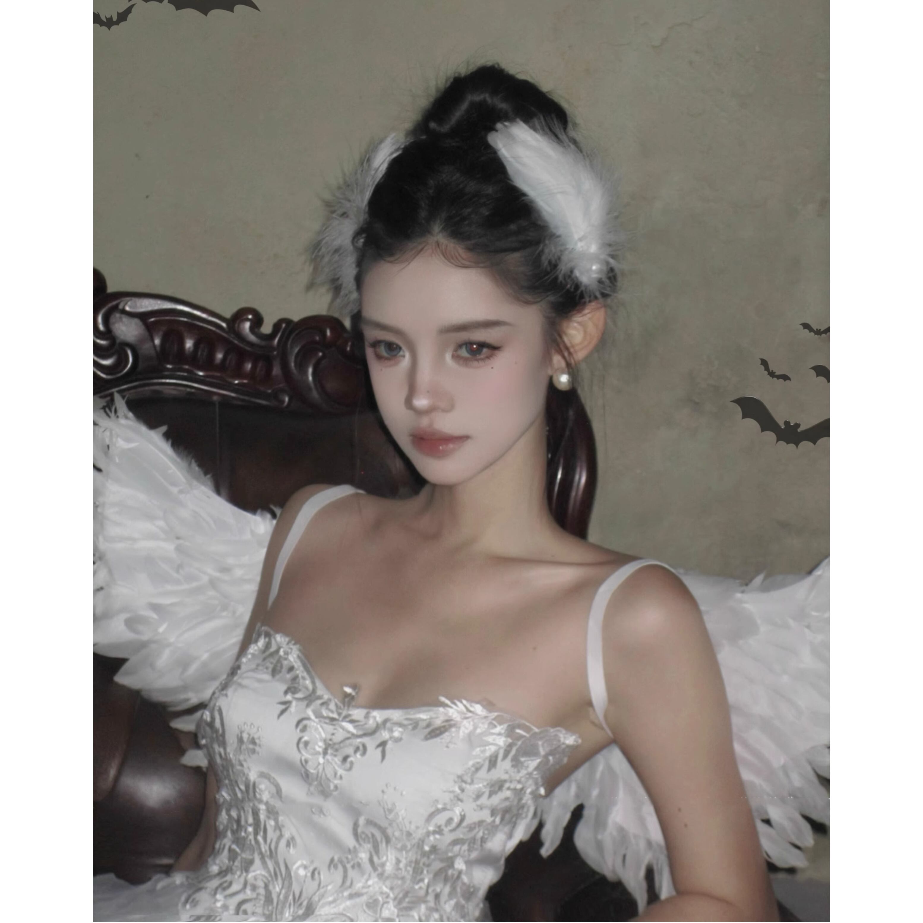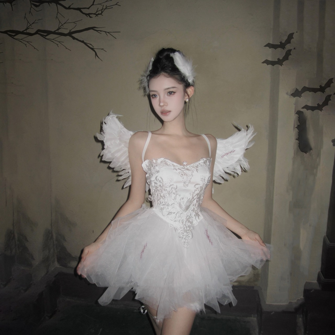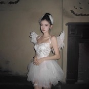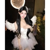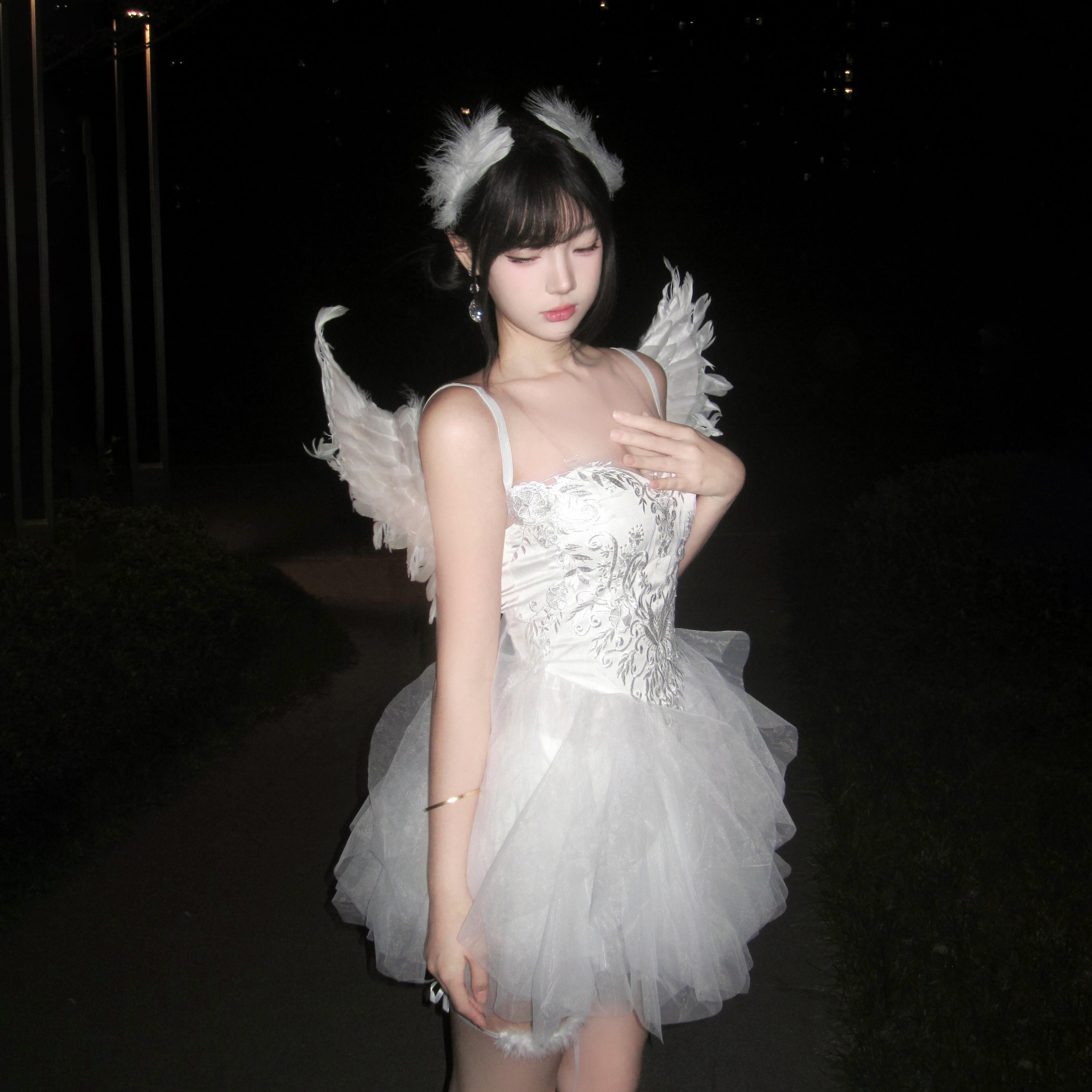 この特別な白天使スタイルのコスチュームは、抹胸デザインと刺繍のディテールが特徴で、まるで白鳥のように優雅で美しい印象を与えます。純欲な雰囲気を醸し出しながら、白いファブリックの蓬蓬スカートがふんわりと広がり、幻想的な魅力を引き立てます。